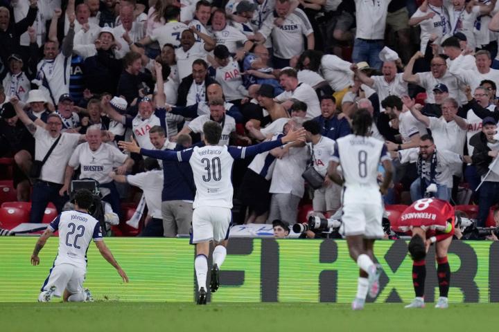 全场比赛结束,托特纳姆热刺1-0战胜曼联,成功夺得2024/25赛季欧联杯冠军。这也是热刺继1999年之后时隔25年再次获得该赛事冠军。球队的主教练和球员们欢庆着这一荣耀时刻,球迷们也为他们的英雄们欢呼。这场胜利不仅是对球队实力的肯定,也是对全队团结拼搏精神的褒奖。